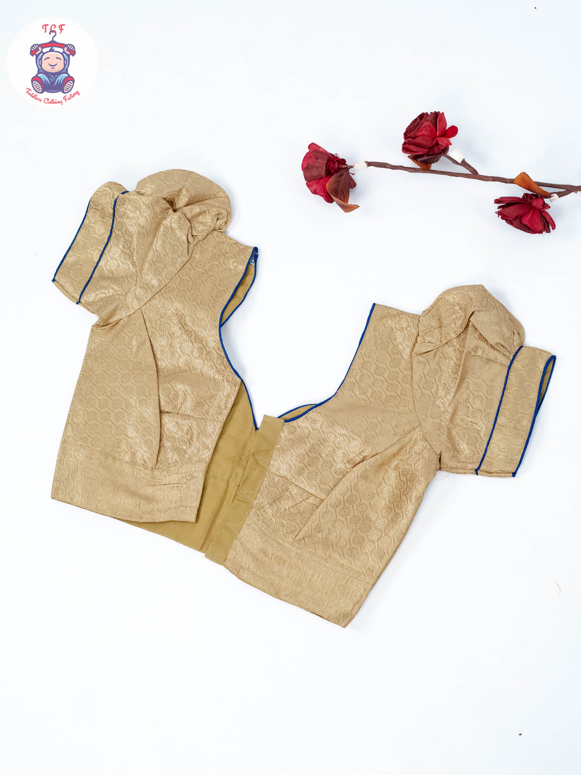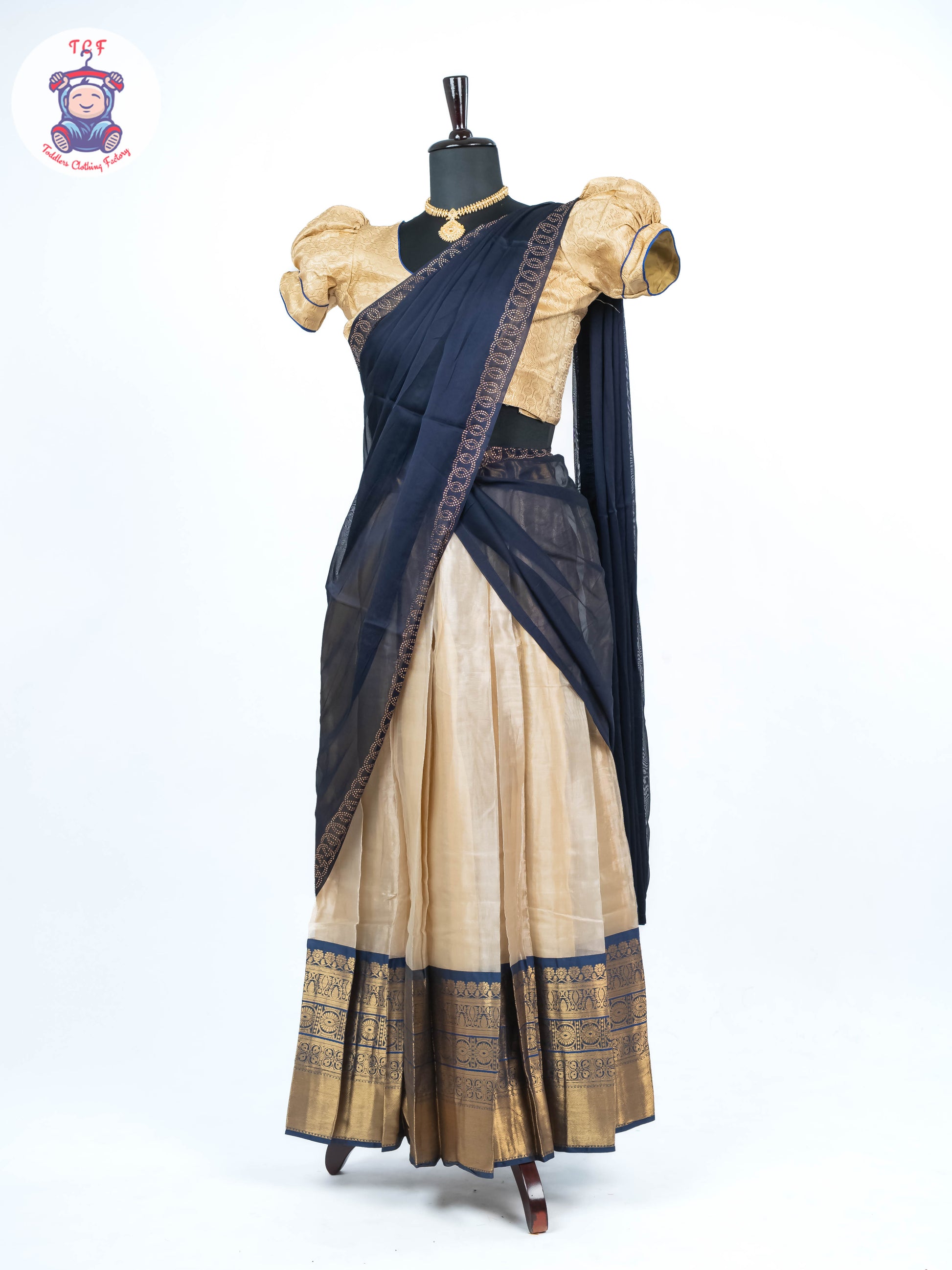 Sandal & Navy Blue - Readymade Half Saree