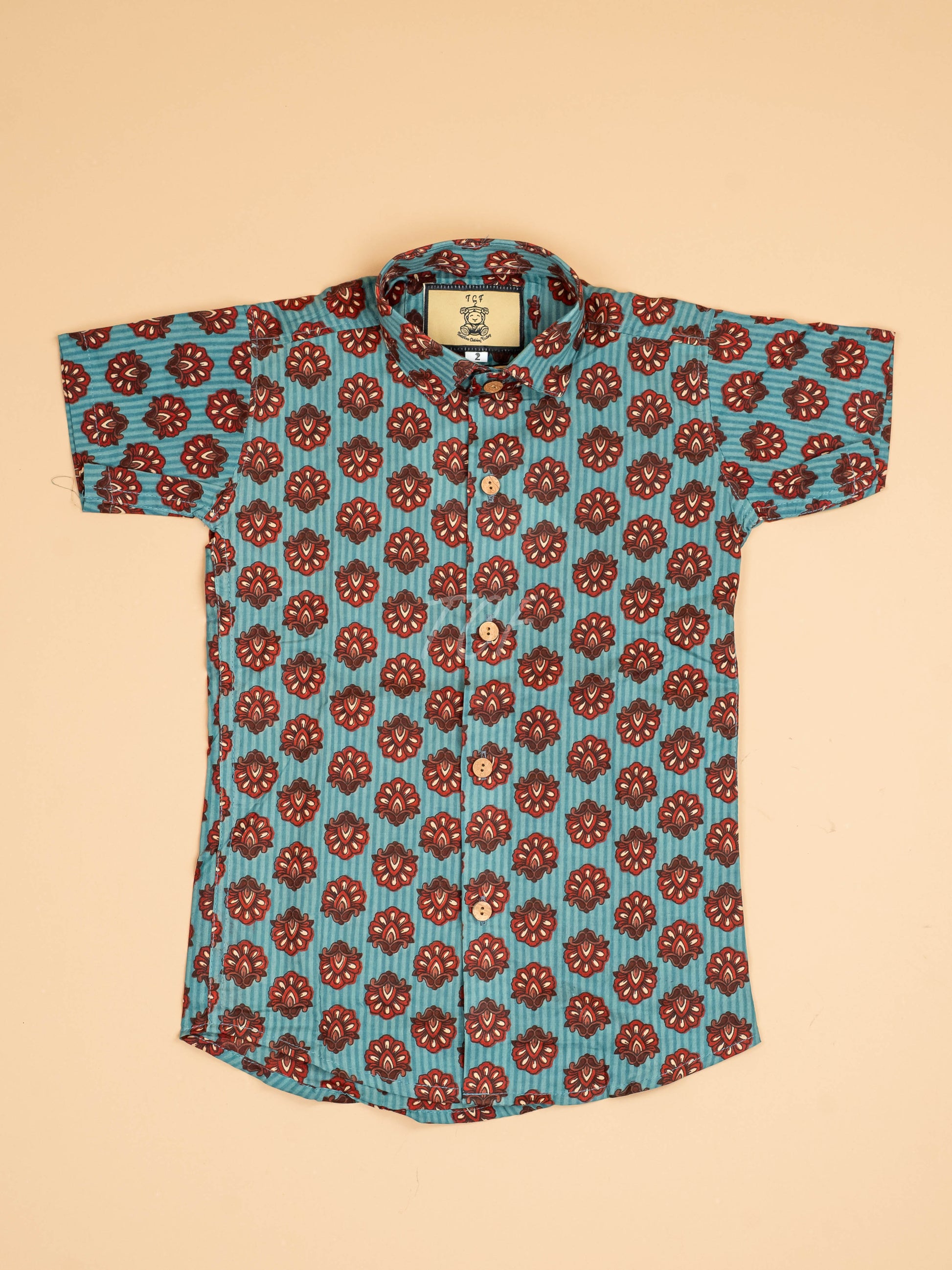 Light Blue & Maroon - Boys Readymade Cotton Printed Shirts
