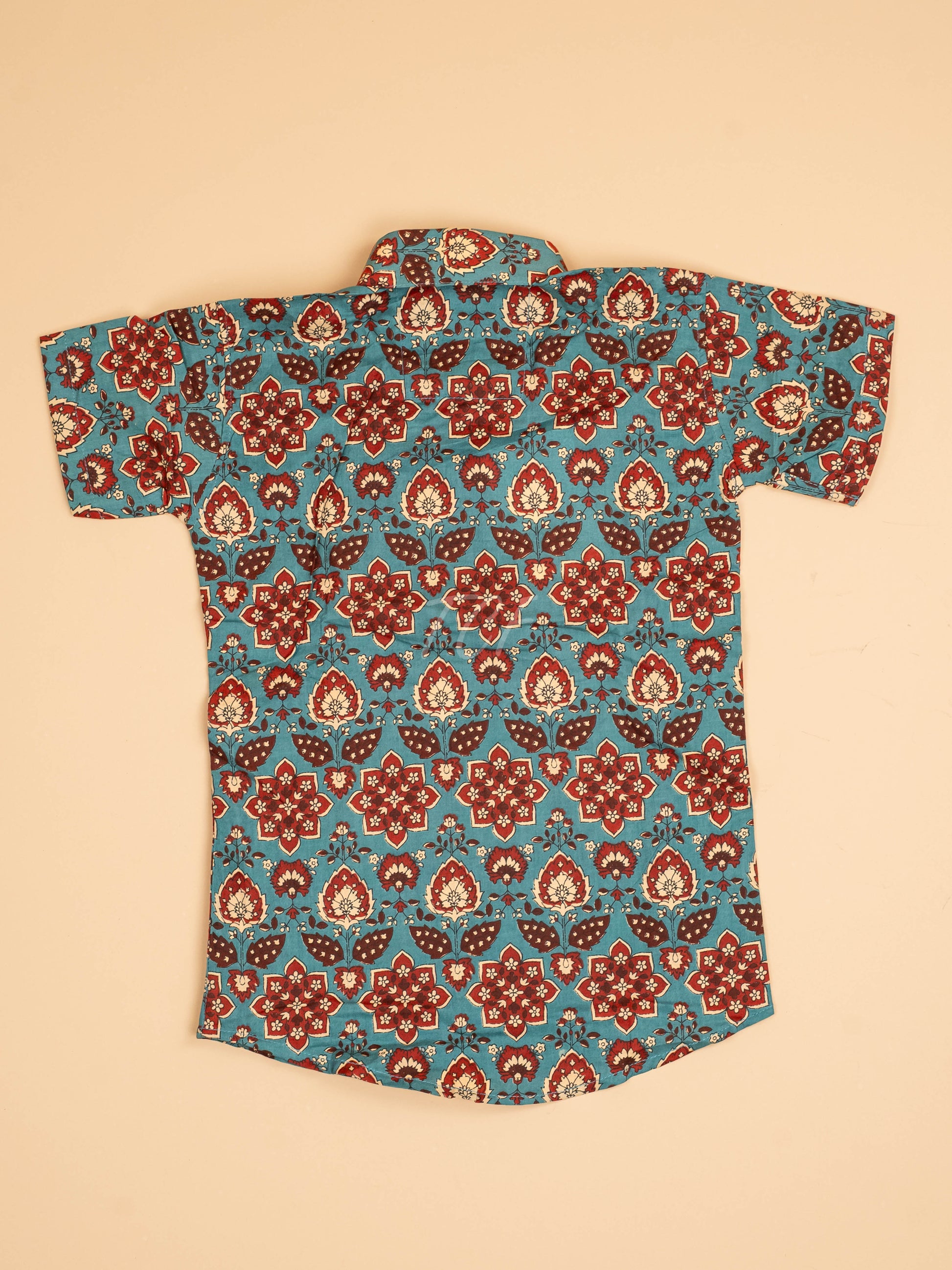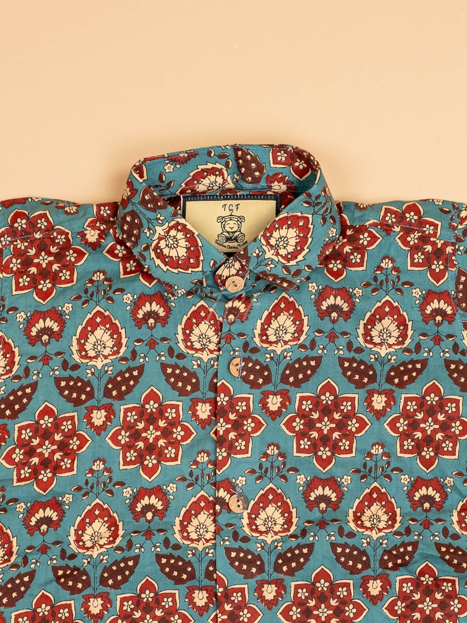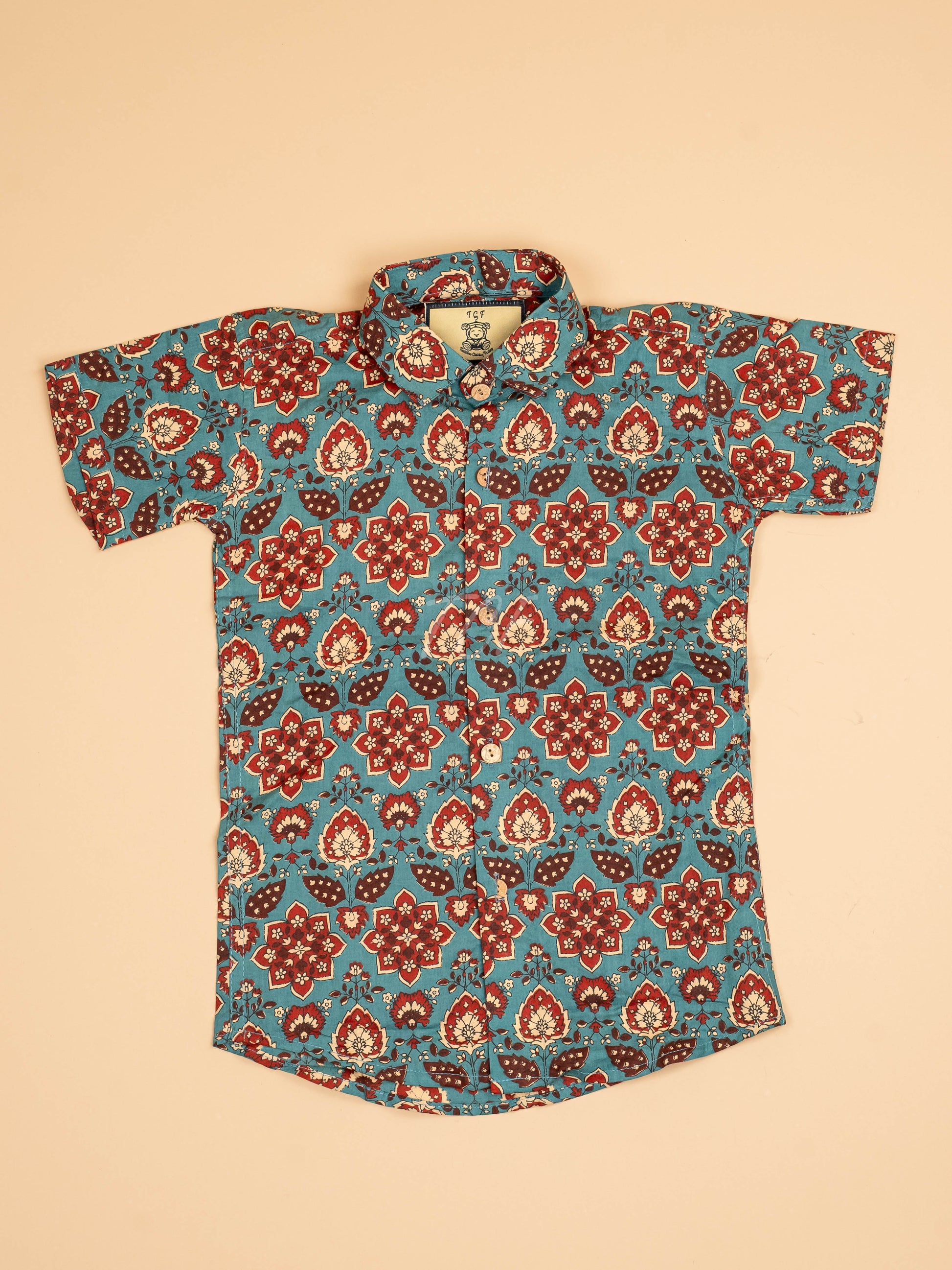 Light Blue & Maroon - Boys Readymade Cotton Printed Shirts