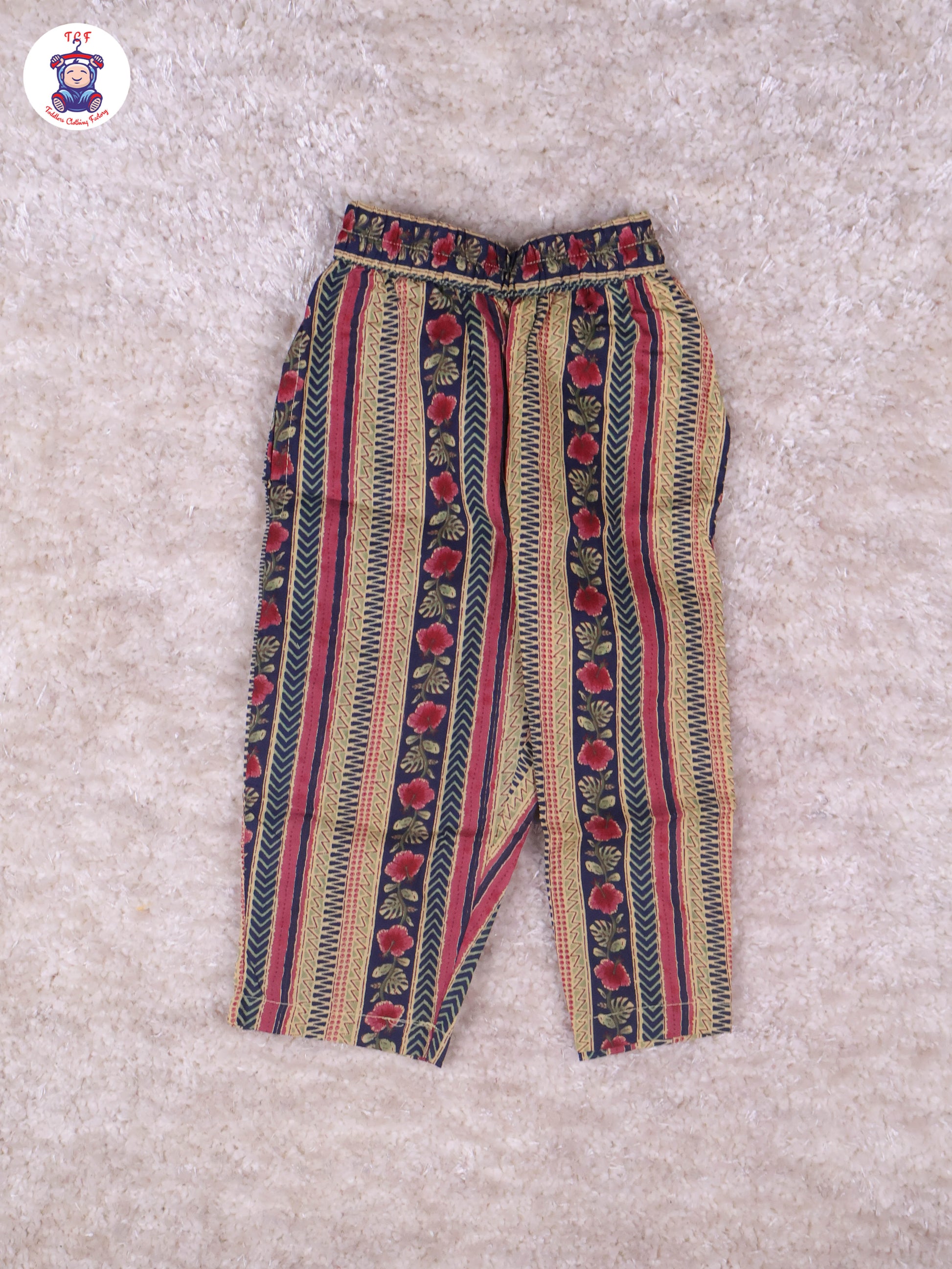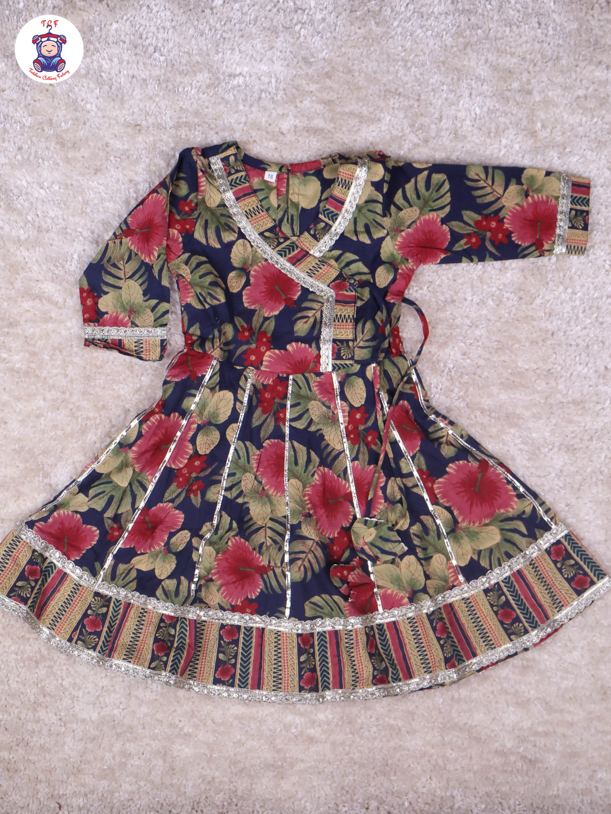 Navy Blue - Floral Printed Anarkali Kurti With Pants