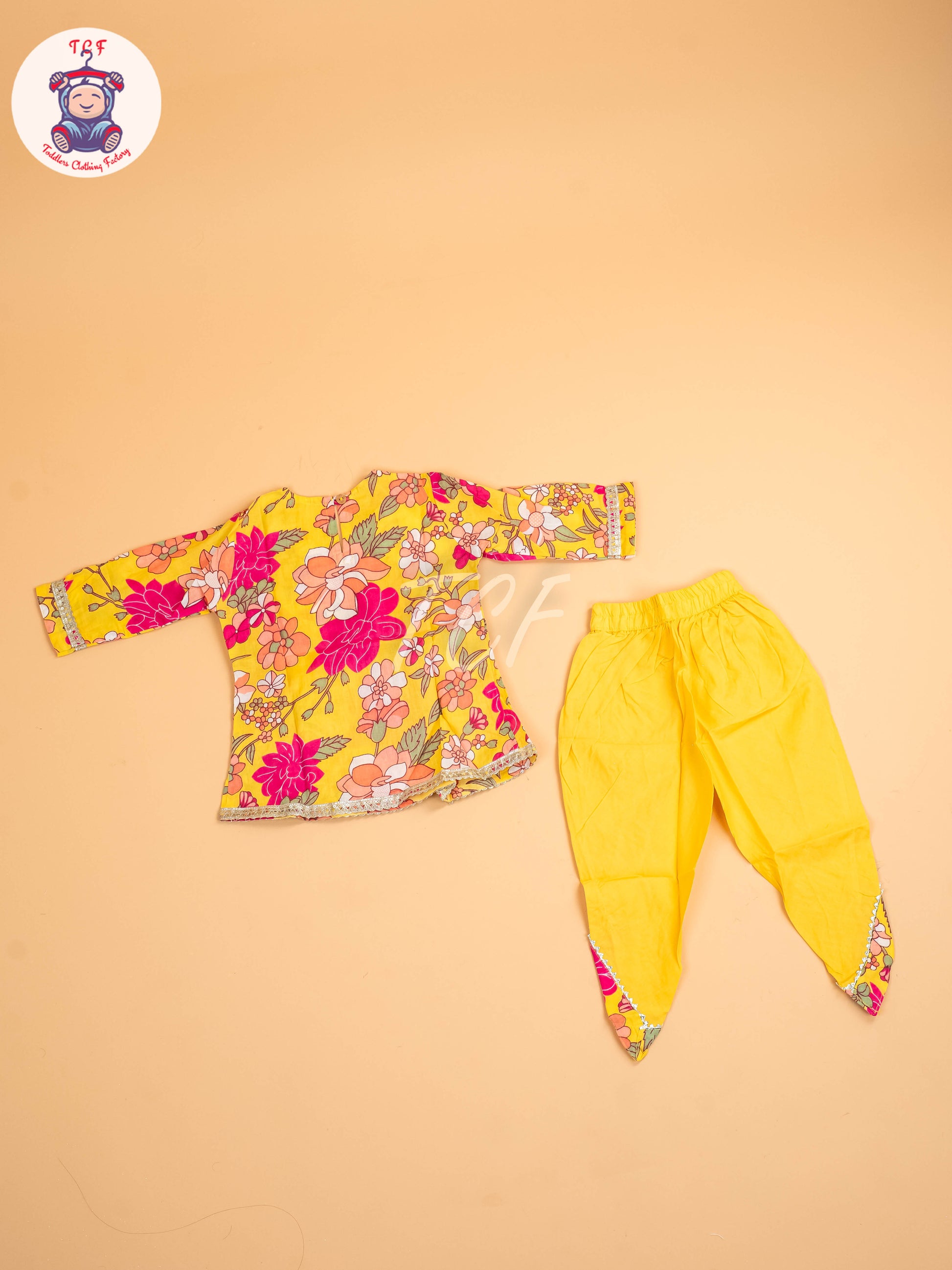 Yellow - Girls Floral printed Dhoti Salwar