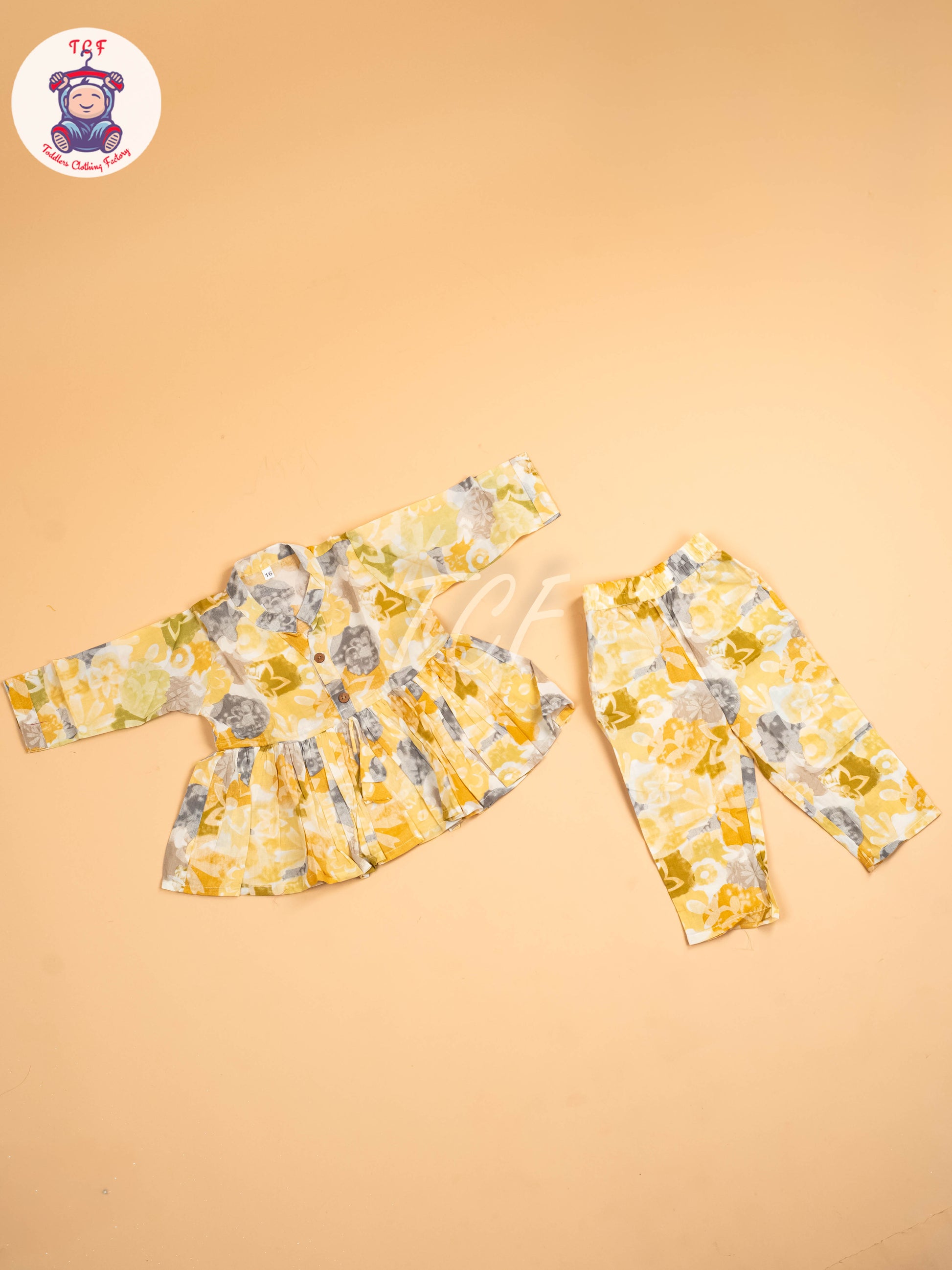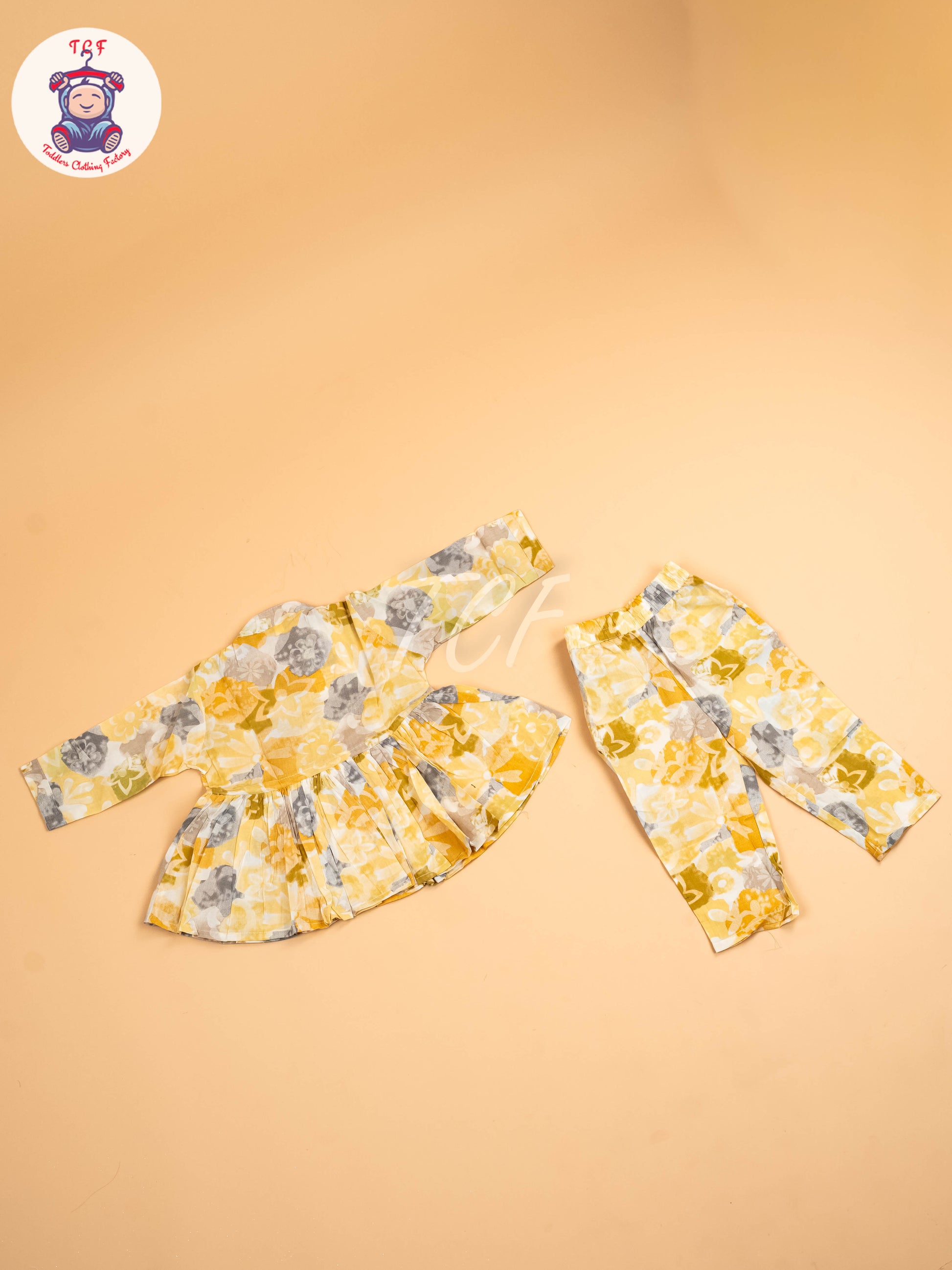 Yellow & Grey - Girls Floral printed Co-ords Sets