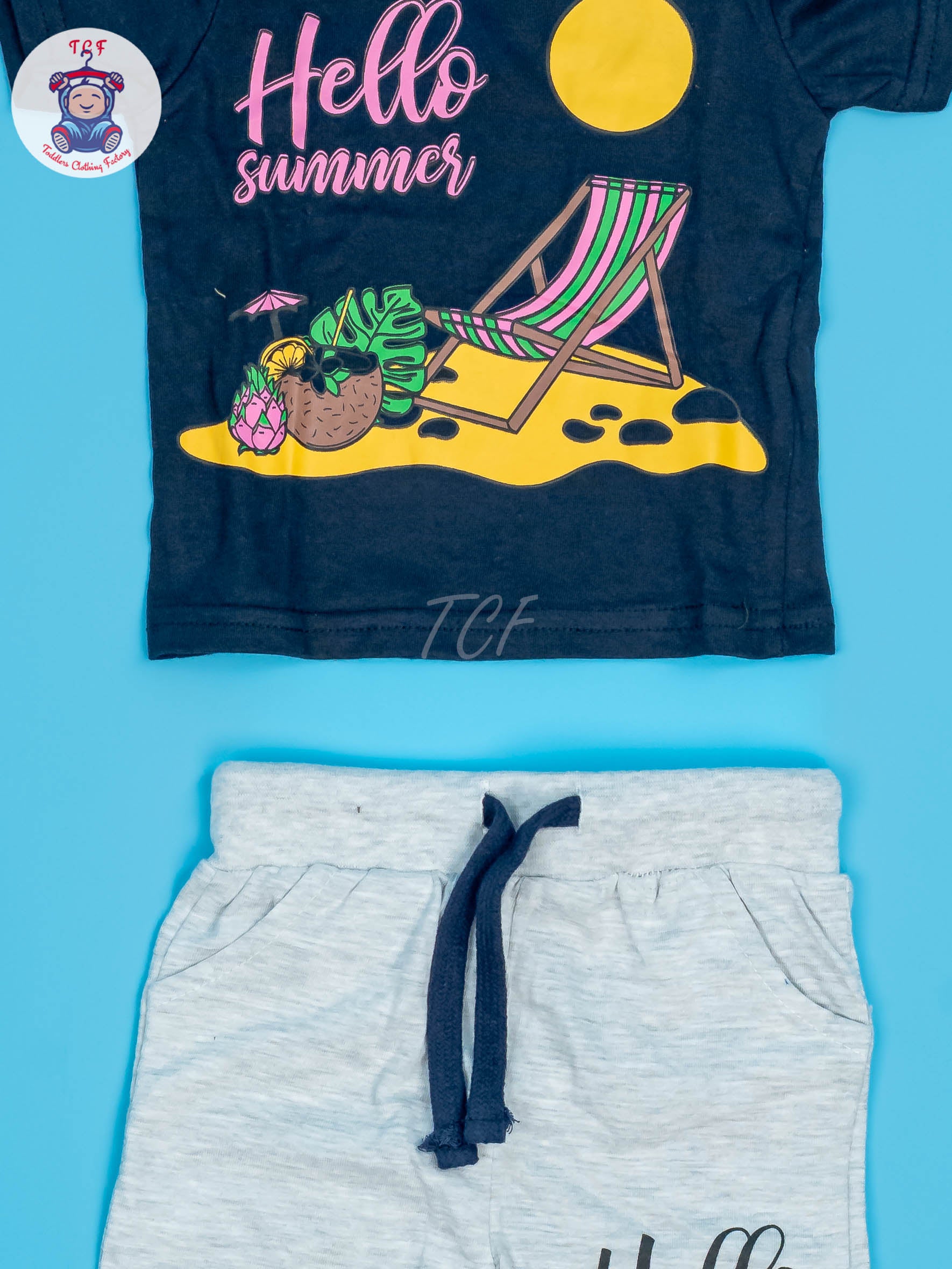 Green - Printed Pan Collor Neck Shirt With Shorts