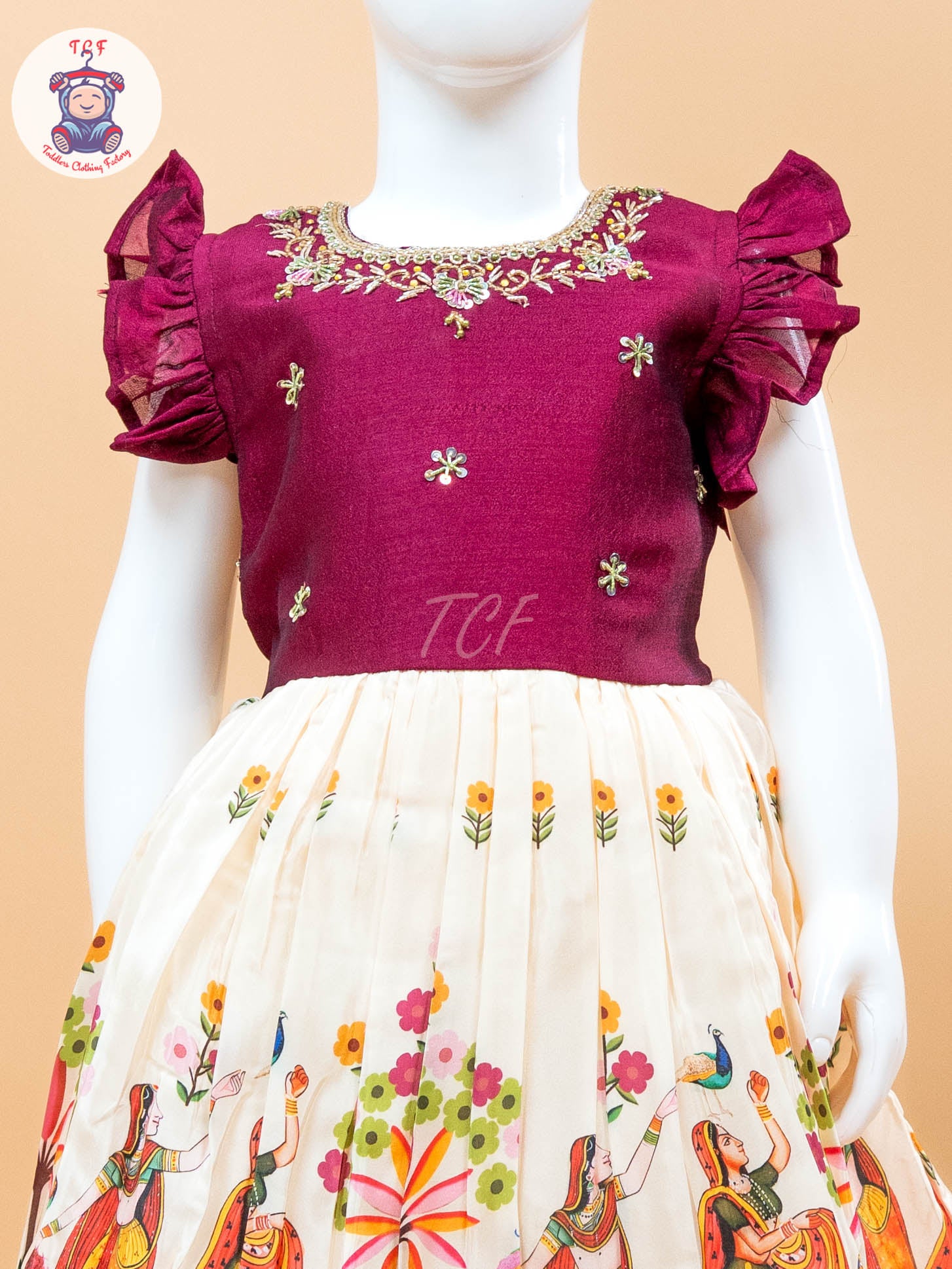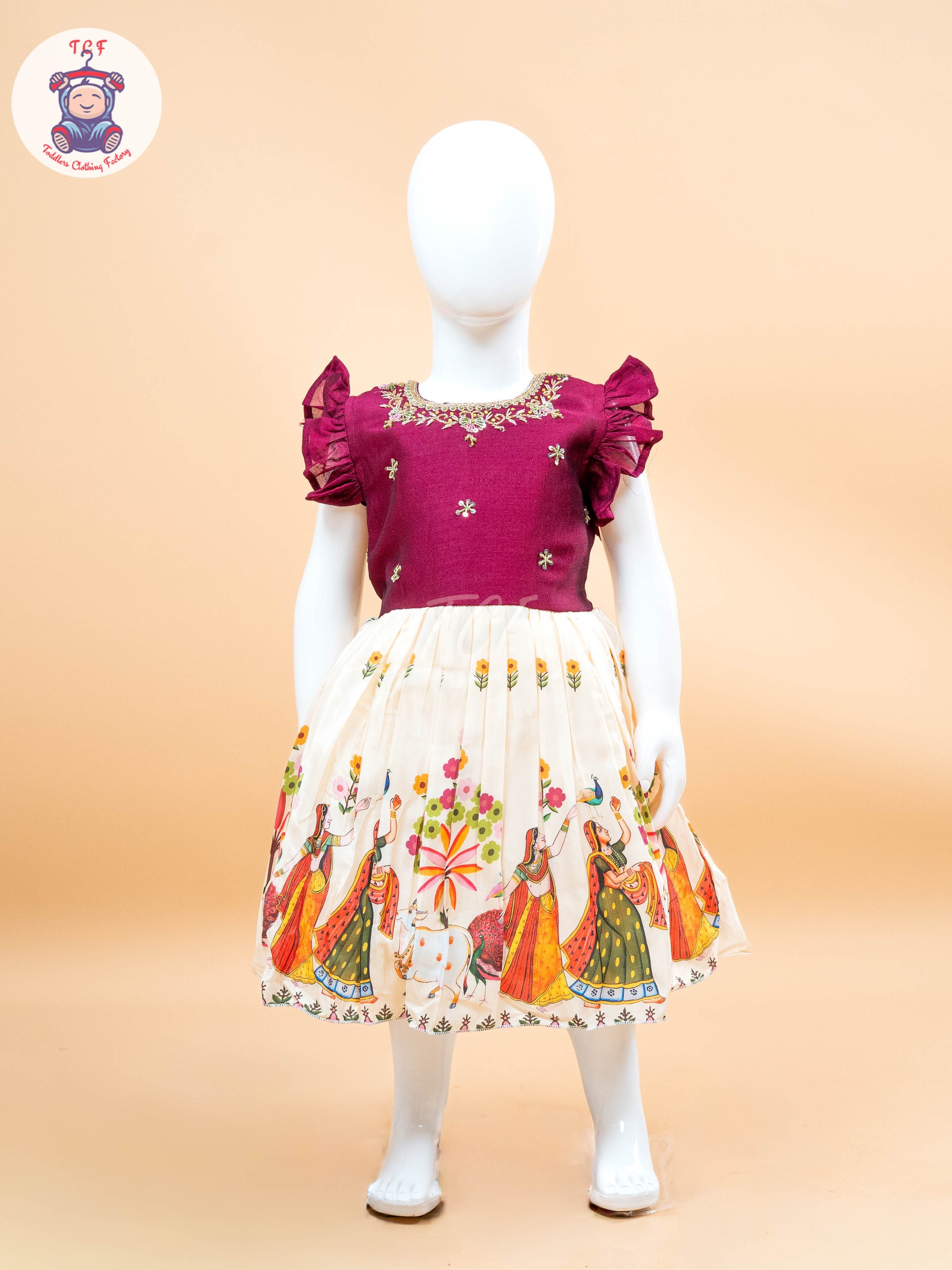 A charming outfit designed with cultural elegance and modern comfort. This frock features classic ethnic patterns, vibrant colors, and delicate detailing that bring out a festive look. The short length adds a playful touch, making it perfect for celebrations, family gatherings, and special occasions. Crafted from soft, breathable fabric, it ensures all-day comfort while keeping the traditional appeal alive.